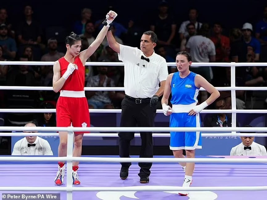 Lin Yu-Ting of Chinese Taipei, who previously failed a gender eligibility test, faced Uzbekistan's Sitora Turdibekova in a boxing match that ended in a unanimous victory for Yu-Ting. The bout, which lasted three rounds, left Turdibekova in tears and sparked widespread condemnation. Critics (sane people) have labeled the decision to let Yu-Ting compete as "unfair, unsafe, and wrong."